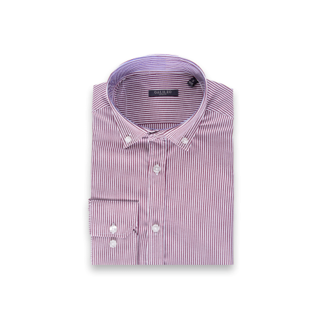Men’s slim fit cotton shirt with thin vertical stripes.