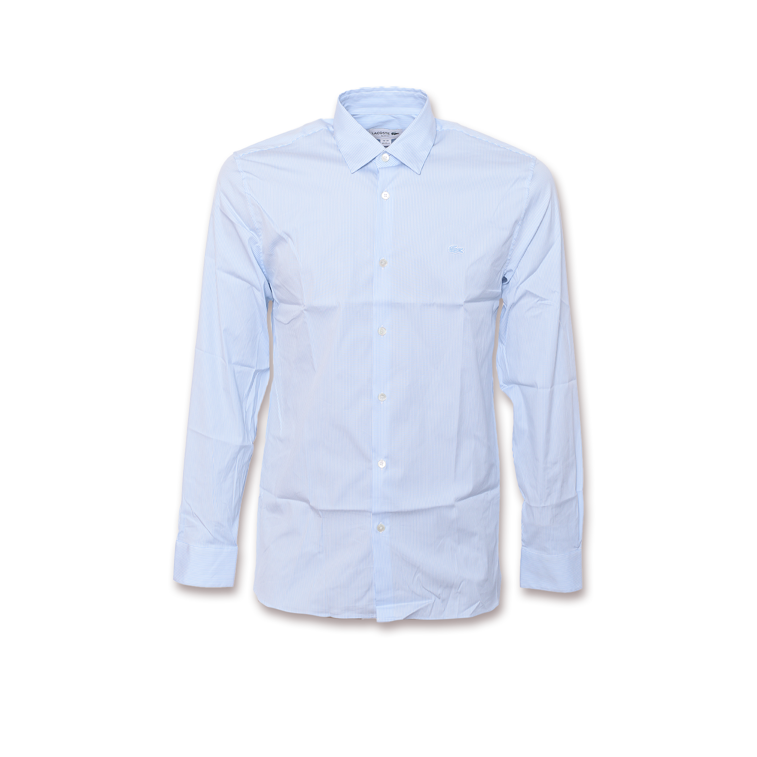 This slim-fit shirt provides a modern silhouette that follows the body line, while the reinforced French collar ensures a perfect shape throughout the day. Subtle vertical stripes and the recognizable embroidered crocodile make it an ideal choice for business and smart-casual occasions.