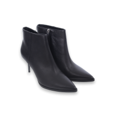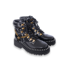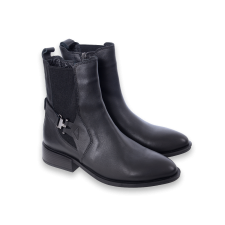 XYZ Black women’s ankle boots, shallow, leather boots with tweed application and gold details.